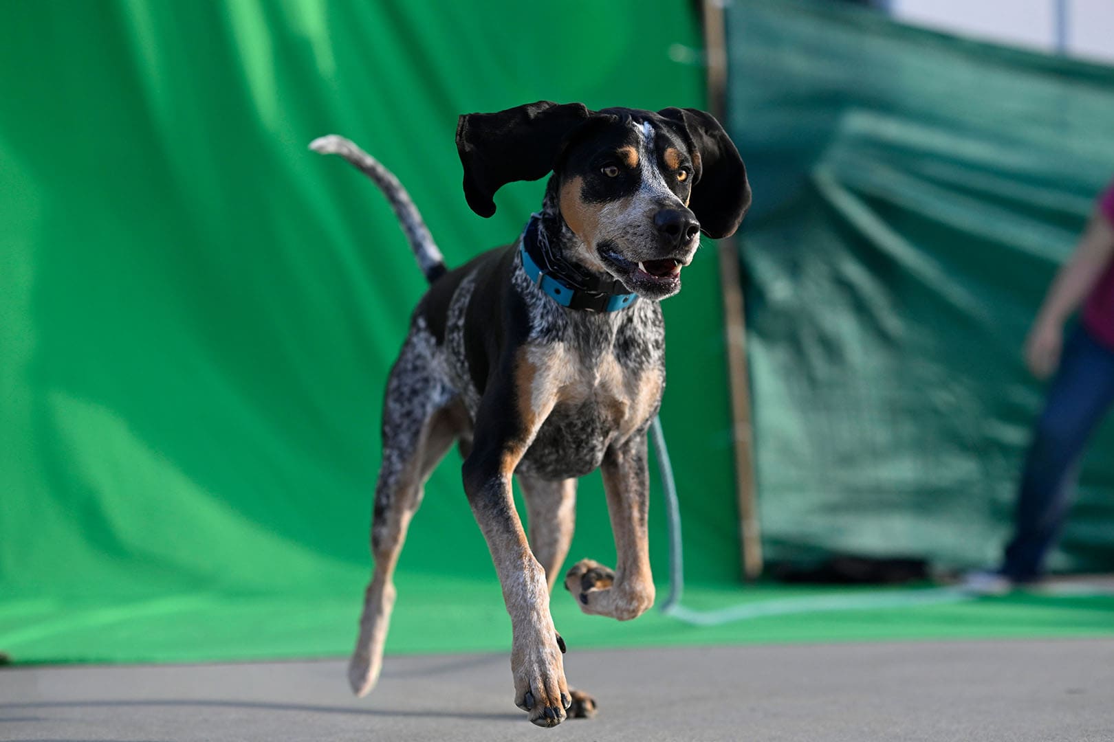 The image here shows a before-and-after of a Blue Tick coonhound, photographed on greenscreen. With tools like Adobe Generative AI, we’re able to generate multiple background options that match key technical elements, such as camera angle, lighting conditions, and lens characteristics, which helps maintain a unified aesthetic across the set.