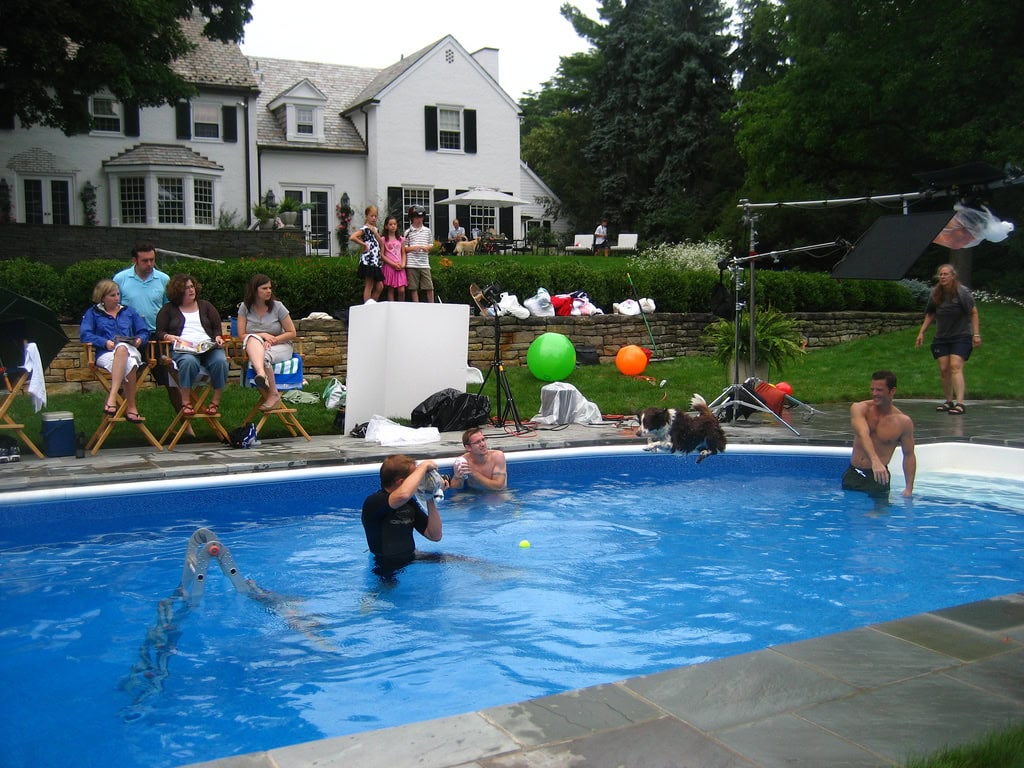 I found myself in a public park, calling in dog clubs as far away as Cleveland, running what amounted to a canine version of American Idol. “We need the dogs to leap, not jump, into the pool,” I explained about one shot to increasingly confused owners.
